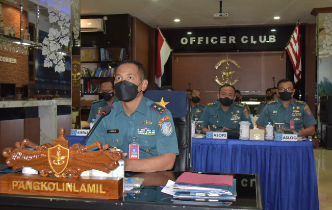 Jakarta, PUBLIKASI – Panglima Komando Lintas Laut Militer Laksda TNI Erwin S. Aldedharma mengikuti ‘Jam Komandan’ atau pengarahan Kepala Staf Angkatan Laut Laksamana TNI Yudo Margono melalui video conference di ruang Officer Club, Mako Kolinlamil, Tanjung Priok, Jakarta Utara, Rabu (18/5). Pengarahan pejabat nomor satu di TNI Angkatan Laut ini diikuti oleh seluruh para Pangkotama, para Komandan Pangkalan dan para Komandan Satuan di jajaran TNI AL.