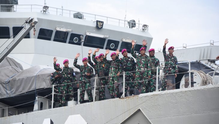Pada sisi lain dermaga beaching plate, tampak keluarga dari prajurit Marinir Satgasmar Operasi Pamtas Laut Natuna Utara Pamtas yang melepas kepergian suami, ayah, anak, kakak dan kerabatnya menuju daerah operasi. Mereka akan berpisah kurang lebih satu tahun lamanya. Ada rasa sedih harus berpisah sementara dengan anggota keluarga yang mereka sayangi, namun lebih dari itu ada rasa bangga yang tak terkira karena mereka rela meninggalkan keluarganya untuk melaksanakan panggilan tugas negara. Selamat berlayar dan bertempur, semoga selamat sampai tujuan. Jalesveva Jayamahe. (Andi Roesman Rola)