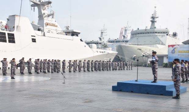 Jakarta, PUBLIKASI-Panglima Komando Lintas Laut Militer Laksda TNI Agus Hariadi selaku Direktur Latihan memimpin apel gelar pasukan Komando Tugas Gabungan Pendaratan Administrasi (Kogasgabratmin). Apel gelar pasukan tersebut dalam rangka rangkaian Latihan Operasi Pendaratan Administrasi tahun 2022 yang dikomandani oleh Komandan Satuan Lintas Laut Militer 1 Kolonel Laut (P) Yohanes Upang selaku Pangkogasgabratmin di Lapangan Moeljono Silam, Mako Kolinlamil, Tanjung Priok, Jakarta Utara, Rabu (31/8). Kegiatan gelar pasukan ini bertujuan untuk mengecek kesiapan personel dan material yang terlibat latihan sebelum pelaksanaan manuver lapangan sebagai kelanjutan dari sebuah proses perencanaan operasi militer yang telah dilaksanakan beberapa waktu yang lalu.