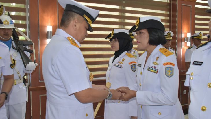 Jakarta, PUBLIKASI —- Panglima Komando Lintas Laut Militer Laksda TNI Yayan Sofiyan memimpin jalannya pengukuhan dan serah terima sejumlah jabatan strategis di lingkungan Kolinlamil yang berlangsung di gedung Laut Nusantara, Mako Kolinlamil, Tanjung Priok, Jakarta Utara, Selasa (2/5). Pejabat yang melaksanakan serah terima jabatan yakni Inspektur Kolinlamil diserahterimakan dari Laksma TNI Wiwien Angkasawati kepada Laksma TNI Damayanti, Komandan Satlinlamil 3 diserahterimakan dari Kolonel Laut (P) Yulis Andreas Lorentius kepada Kolonel Laut (P) Nur Rochmad Ibrahim. Kemudian dilanjutkan dengan pengukuhan jabatan Asrena Pangkolinlamil yang dijabat oleh Kolonel Laut (P) Victor Pardamean dan Komandan Satlinlamil 2 yang dijabat oleh Kolonel Laut (P) Yulis Andreas Lorentius.