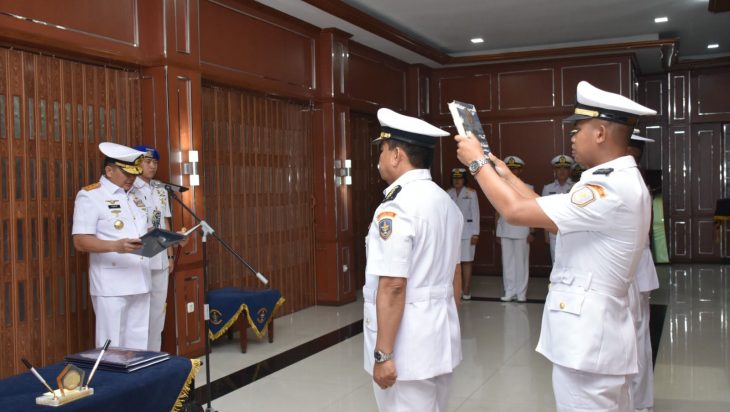 Jakarta, PUBLIKASI — Panglima Komando Lintas Laut Militer Laksda TNI Edwin, S.H., M.Han. M.H. memimpin jalannya serah terima dan penyerahan jabatan di lingkungan Kolinlamil yang berlangsung di Gedung Laut Nusantara, Mako Kolinlamil, Tanjung Priok, Jakarta Utara, (18/10). Pejabat yang melaksanakan serah terima jabatan yaitu Staf Ahli A Wilnas Kolinlamil Kolonel Laut (KH) Abdul Wadud, S.Ag kepada Kolonel Laut (T) Ayi Syarif Hidayat, S.E., M.M, dan penyerahan jabatan Kepala Keuangan Wilayah (Kakuwil) Kolinlamil Kolonel Laut (S) Dede Suhendrawan, S.T., M.Tr.Opsla kepada Panglima Kolinlamil dan selanjutnya akan mengemban tugas baru di Pusku Mabes TNI.