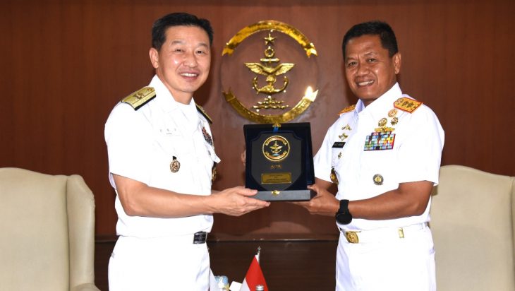 Jakarta, PUBLIKASI – Panglima Komando Lintas Laut Militer Laksda TNI Agus Hariadi menerima kunjungan kehormatan delegasi Republic of Korea Navy (ROKN) pimpinan Commander Cruise Training Task Group Rear Admiral (RDML) Kang Dong-Goo di Gedung Laut Nusantara, Mako Kolinlamil, Tanjung Priok, Jakarta Utara, Selasa (11/10). Kedatangan Commander Cruise Training Task Group ROKN beserta rombongan ke Kolinlamil dalam rangka courtesy call guna mempererat hubungan kerja sama bilateral yang selama ini telah terjalin dengan baik khususnya dalam bidang latihan dan berbagai upaya guna menjaga stabilitas keamanan kawasan.