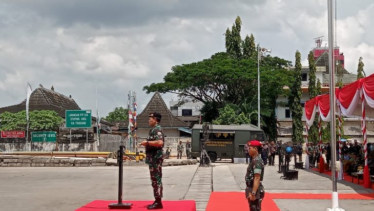 Upacara Pemberangkatan Satgas Pamtas Kewilayahan RI-PNG Papua TA. 2023 merupakan wujud implementasi dari mempertahankan kedaulatan negara agar tetap aman dari berbagai ancaman. (Andi Roesman Rola)
