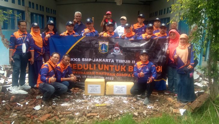Cianjur, PUBLIKASI – Sebagai bentuk solidaritas dan kepedulian akibat gempa Cianjur, Jawa Barat, Keluarga Besar Musyawarah Kerja Kepala Sekolah SMP Jakarta Timur (MKKS SMP Jaktim) 2, DKI Jakarta, memberikan bantuan kepada masyarakat terdampak, pada Sabtu (17/12/2022).