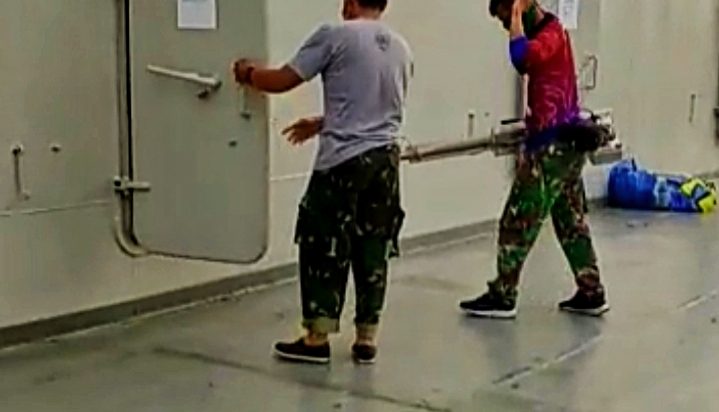 Jakarta, PUBLIKASI – Lingkungan kerja yang sehat sangat menentukan kenyamanan setiap orang dalam melaksanakan aktifitas kesehariannya. Begitu pula di lingkungan kapal perang (KRI) Komando Lintas Laut Militer. Dalam rangka mengupayakan kesehatan dan kenyamanan kerja bagi prajurit pengawaknya, KRI Teluk Bintuni-520 bersama dengan Dinas Kesehatan Kolinlamil melaksanakan fogging (pengasapan) untuk membasmi penyebaran penyakit yang disebabkan oleh serangga, Selasa (25/1).