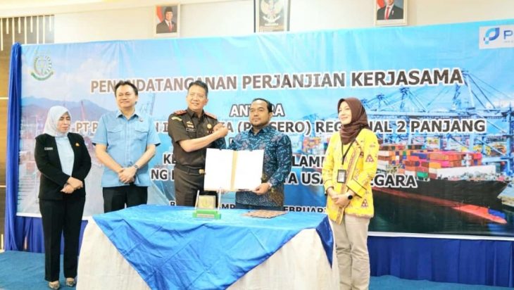 Bandarlampung, PUBLIKASI – Bertempat digedung AKHLAK PT Pelabuhan Indonesia (Persero) Regional 2 Panjang Bandar Lampung bersama Kejaksaan Tinggi Lampung melakukan Perjanjian Kerjasama tentang Penanganan Masalah Perdata Dan Tata Usaha Negara, Penandatanganan kedua belah pihak dilakukan oleh General Manager Pelindo Regional 2 Panjang Imam Rahmiyadi dan Kepala Kejaksaan Tinggi Lampung, Dr. Kuntadi, S.H., M.H., perjanjian kerjasama ini dilakukan untuk mengoptimalkan pelaksanaan tugas dan fungsi dalam bidang Perdata dan Tata Usaha Negara, selain itu juga untuk meningkatkan efektifitas penanganan penyelesaian masalah hukum dalam bidang Perdata dan Tata Usaha Negara, baik di dalam maupun diluar pengadilan.