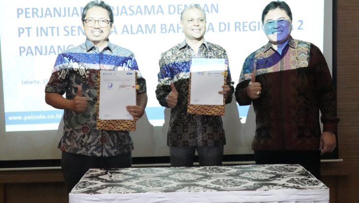 Bandar Lampung, PUBLIKASI – bertempat di Ruang Rapat Lantai 7 Bandar Jaya A PT Pelabuhan Indonesia (Persero), PT Pelabuhan Indonesia (Persero) Regional 2 Panjang bersama PT Inti Sentosa Alam Bahtera melakukan Perjanjian Kerjasama tentang Kerjasama Optimalisasi Fasilitas dan Pelayanan Jasa Kepelabuhanan di PT Pelabuhan Indonesia (Persero) Regional 2 Panjang, Penandatanganan kedua belah pihak dilakukan oleh General Head Pelindo Regional 2 Guna Mulyana dan President Director PT Inti Sentosa Alam Bahtera Rajat Dutt.