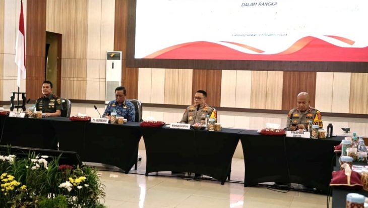 Lampung, PUBLIKASI — Rapat Koordinasi Lintas Sektoral Operasi Lilin Karakatau-2024 yang dihadiri berbagai Instansi seperti Kepolisian, TNI, Forkopimda dan Unsur Maritim lainnya, bertempat di Mapolda Lampung yang dipimpin oleh Kapolda Lampung, Irjen Pol Helmy Santika menyebutkan dalam sambutannya menegaskan pentingnya sinergi antar-stakeholder untuk menjamin keamanan dan kenyamanan masyarakat selama periode Nataru. “Kita harus memastikan semua aspek berjalan lancar agar kegiatan masyarakat tetap aman dan tertib,” tegasnya.