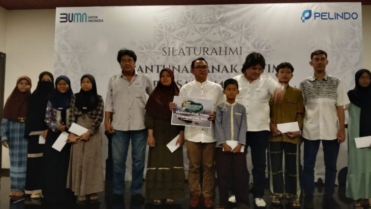 Eksekutif General Manager Pelabuhan Tanjung priok Adi Sugiri menyerahkan langsung bingkisan dan bantuan kaum anak yatim, santunan ini tanda berbagi antara Pelindo regional Priok dan anak yatim serta menyambung tali silaturahmi sesama insan manusia ciptaan Allah SWT.