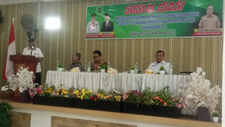 Padang Lawas, PUBLIKASI – Pemerintah Kabupaten Padang Lawas (Pemkab Palas) melalui Badan Kepegawaian dan pengembangan Sumber Daya Manusia (BKSDM) mensosialisasikan peraturan pemerintah (PP) nomor 94 tahun 2021 tentang penegakan Dispilin Aparatur Spil Negara (ASN) dikingkungan pemerintahan Kabupaten Padang Lawas.