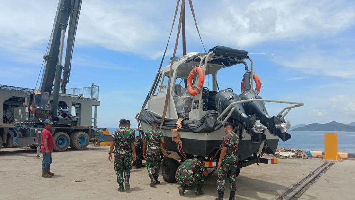 Jakarta, PUBLIKASI – Laksanakan Operasi Jala Dharma tahun 2022 sekaligus mendistribusikan 1-unit Rigid Inflatable Boat (RIB), KRI Teluk Palu-523 tiba di Pelabuhan Multipurpose Pelindo III Labuan Bajo Kec. Komodo, Kabupaten Manggarai Barat, Nusa Tenggara Timur, Senin (17/10). Kedatangan KRI jenis AT jajaran Kolinlamil di Pelabuhan Multy Purpose Pelindo III mendapat sambutan yang hangat dari prajurit Lanal Labuhan Bajo yang melaksanakan merflug karena KRI Teluk Palu-523 merupakan KRI pertama yang sandar di pelabuhan tersebut.