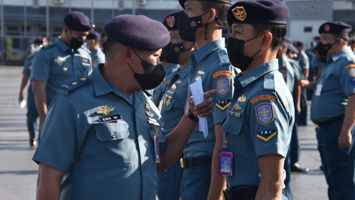 Jakarta, PUBLIKASI – Komandan Denma Komando Lintas Laut Militer Kolonel Laut (P) Saekhul Anwar mengambil apel pengecekan penggunaan pakaian dinas harian TNI AL di lapangan Mulyono Silam, Mako Kolinlamil, Tanjung Priok, Jakarta Utara, Rabu (6/4)
