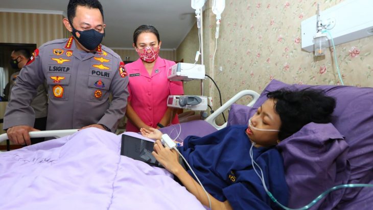 Sigit beserta istri sekaligus Ketua Umum Bhayangkari Juliati Sigit Prabowo, menjenguk Sinta Aulia untuk melihat kondisinya secara langsung saat menjalani perawatan di Rumah Sakit (RS) Polri, Kramat Jati, Jakarta Timur, Minggu (20/2/2022).