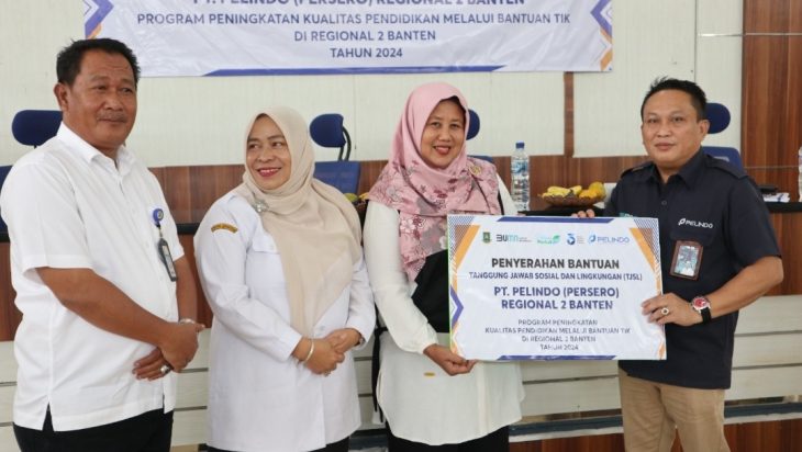 Banten, PUBLIKASI — Pelaksanaan Program Tanggung Jawab Sosial dan Lingkungan (TJSL) Program Penunjang Pendidikan berupa Bantuan TIK di Regional 2 Banten Tahun 2024 yang diserahkan langsung oleh Junior Manager SDM, Umum dan KBL Bpk. Daying Utama yang mewakili General Manager PT Pelindo Regional 2 Banten.