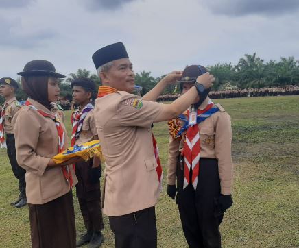 Selain pembina upacara, Arpan juga melepas tanda peserta anggota Pramuka secara simbolis kepada empat orang.