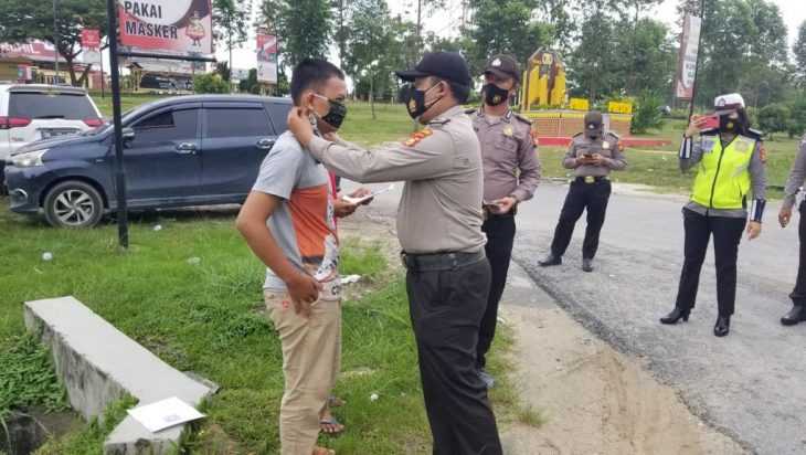 Rohil, PUBLIKASI – Polres Rokan Hilir gelar kegiatan Yustisi Penegakan Hukum Covid-19 serta pembagian masker kepada pengguna jalan. Kegiatan ini berlangsung didepan Mapolres Rokan Hilir. Selasa 02 November 2021.