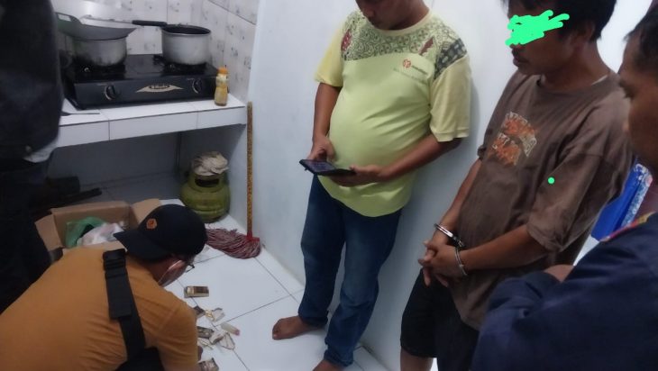 Saat dilakukan penggeledahan tim menemukan barang bukti 4 (Empat) bungkus plastik klip transparan berukuran kecil diduga berisi narkoba jenis sabu yang sempat disembunyikan di dapur rumah oleh pelaku.