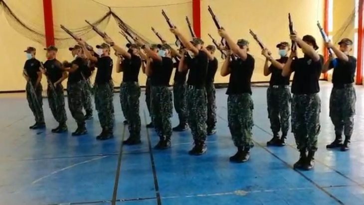 Latihan Kolone Senapan diikuti 18 Taruna Poltekpel Malahayati menggunakan replika senjata laras panjang jenis Jeren yang dilaksanakan tiga kali dalam seminggu dengan pelatih Serda Nav Rasidin yang merupakan anggota Posal Malahayati.