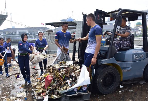 Jakarta, PUBLIKASI — Pepatah lama mengatakan bahwa “Kebersihan Sebagian Dari Iman” oleh karenanya kebersihan lingkungan merupakan tanggung jawab bersama. Guna menjaga kebersihan dan keindahan lingkungan laut khususnya di sekitar dermaga Mako Kolinlamil, Prajurit Kolinlamil siap melaksanakan pembersihan melawan serangan sampah musiman yang berasal dari laut yang tampak mengapung dan mengepung Dermaga Beaching Kolinlamil, Mako Kolinlamil, Tanjung Priok, Jakarta Utara, Kamis (28/3).