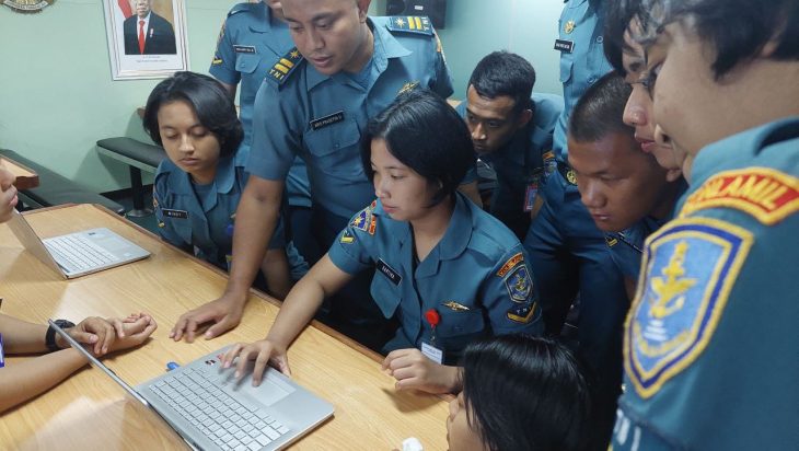 “Setelah diberikan pelatihan secara teori, mereka langsung diberikan tugas untuk membuat konsep surat atau dokumen dan membuat konsep presentasi menggunakan powerpoint. Learning by doing.” ujar Komandan KRI Banjarmasin-592.