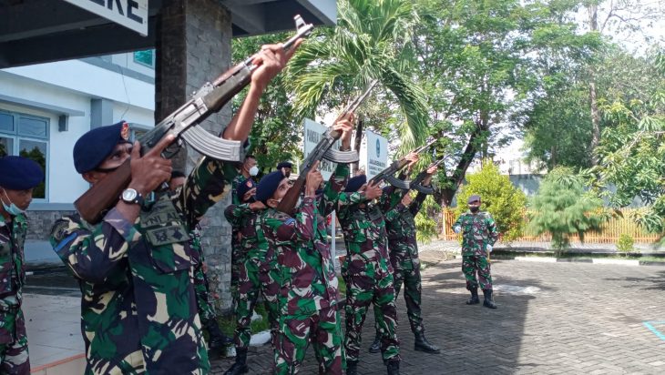 Jakarta, PUBLIKASI – Prajurit Satuan Lintas Laut Militer (Satlinlamil) 3 Makassar melaksanakan latihan pangkalan di Mako Satlinlamil 3 Makassar, Selasa (9/11).