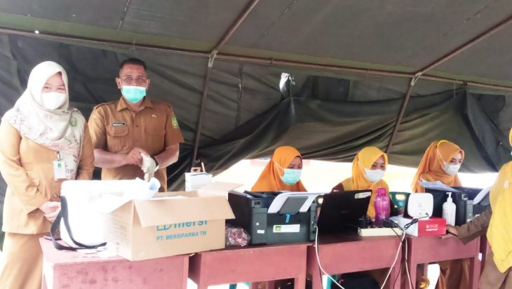 Gerai vaksinasi massal Presisi yang dilaksanakan Polsek Pangkalan Brandan, dibantu tenaga medis dari Puskesmas Desa Securai Utara, Puskesmas Pangkalan Brandan, Puskesmas Desa Lama Sei Lepan, Puskesmas Brandan Barat dan Tim medis dari Yonif 8 Marinir Tangkah Lagan. (DL.01)