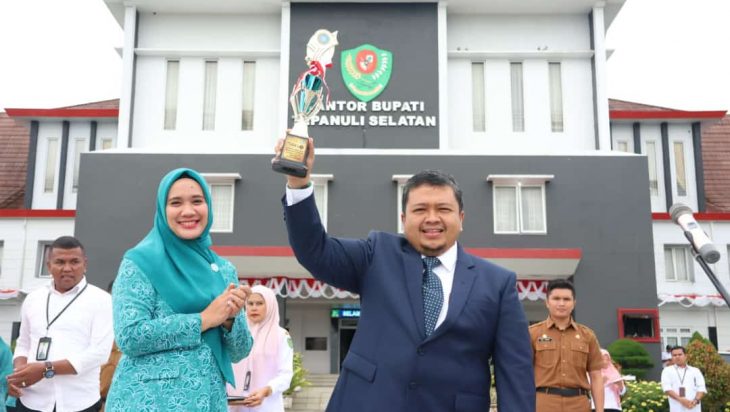 Tapsel, PUBLIKASI – Berhasil meraih juara umum di tingkat Provinsi Sumatera Utara, Bupati Tapanuli Selatan (Tapsel) Dolly Pasaribu menyerahkan sejumlah penghargaan kepada kepala desa dan PKK desa di lapangan Parade Perkantoran Pemerintahan Tapanuli Selatan, Jalan Prof. Lafran Pane, Sipirok, Senin (4/9).