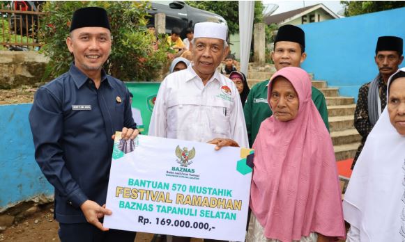 Setelah itu, Sekda menyerahkan santunan Baznas kepada 95 mustahik dari tiga kecamatan yakni Kecamatan Marancar, Kecamatan Batang Toru dan Kecamatan Muara Batang Toru.