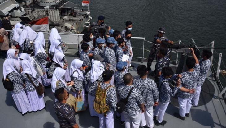 Jakarta, PUBLIKASI – Setelah membuka kembali program wisata edukasi dengan memberikan fasilitas berkunjung ke kapal perang, Komando Lintas Laut Militer menerima kunjungan ratusan pelajar SMP dan SMA Darul Hikam Integrated School, Bandung Barat ke KRI Teluk Palu-523 yang saat ini sedang sandar di Dermaga Mako Kolinlamil, Tanjung Priok, Jakarta Utara, Jumat (27/5).