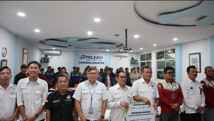 Cilegon, PUBLIKASI – PT Pelabuhan Indonesia (Persero) Regional 2 Banten terus menunjukkan komitmennya dalam mendukung penerapan budaya Keselamatan dan Kesehatan Kerja (K3) di lingkungan pelabuhan. Melalui program Tanggung Jawab Sosial dan Lingkungan (TJSL), Pelindo Regional 2 Banten menyerahkan bantuan Alat Pelindung Diri (APD) kepada Tenaga Kerja Bongkar Muat (TKBM) dan sopir truk di Pelabuhan Ciwandan, sekaligus menggelar sosialisasi pentingnya K3 di tempat kerja dan safety driving training.