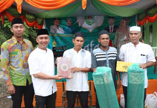 Selanjutnya bantuan 10 cetak Al-Qur’an, 2 gulung ambal sajadah, 10 kain sarung, dan 1 Unit Vacum Cleaner (Pembersih Sajadah), yang langsung diserahkan Sekda kepada pengurus BKM Masjid setempat.