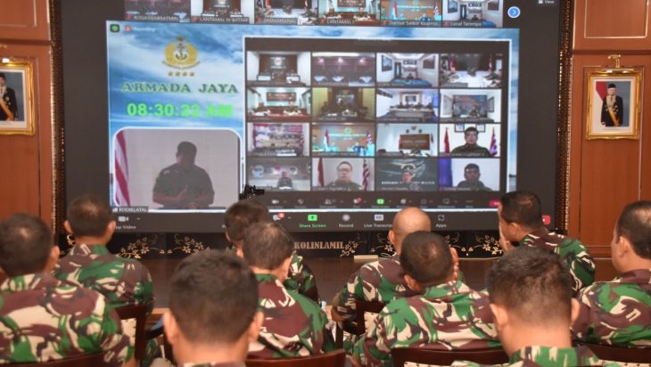 Jakarta, PUBLIKASI — Latihan puncak TNI AL Armada Jaya XLI tahun 2023 akan segera digelar. Direncanakan pada tahun ini akan digelar dalam dua tahap yaitu tahap geladi pos komando (posko) dan geladi manuver lapangan (manlap). Dalam rangka mewujudkan kesamaan pemahaman terhadap skenario latihan yang telah disusun oleh Staf Perencana Latihan (SPL), Kepala Staf Kolinlamil Laksma TNI Singgih Sugiarto bersama seluruh Perwira Kolinlamil yang terlibat latihan Armada Jaya XLI mengikuti kegiatan briefing pelaku yang terpusat di Komando Pembinaan Doktrin, Pendidikan dan Latihan Tentara Nasional Indonesia Angkatan Laut (Kodiklatal) melalui video conference di gedung Laut Nusantara, Mako Kolinlamil, Tanjung Priok, Jakarta Utara, Jumat (9/6).