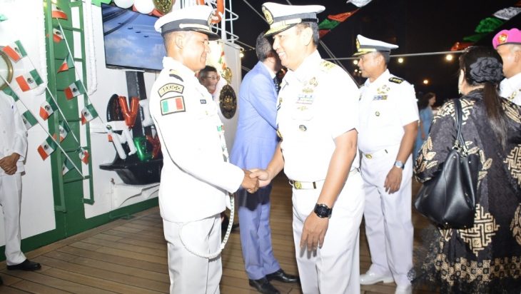 Jakarta, PUBLIKASI — Inspektur Kolinlamil Laksma TNI Kunto Tjahjono, S.E., M.Han., M.Tr.Opsla., CRMP mewakili Wakil Kepala Staf Angkatan Laut (Wakasal) dan Panglima Kolinlamil Laksda TNI Hudiarto Krisno Utomo, PSC(j) M.A., M.M.S., CHRMP menghadiri resepsi di atas Kapal Latih Meksiko ARM Cuauhtémoc (BE01) dalam rangka HUT negara Mexico ke-214 bertempat di Dermaga Pelni 107 Tanjung Priok, Jakarta Utara, Senin malam (2/9) dan turut dihadiri Pejabat Utama Mabesal serta tamu undangan lainnya.