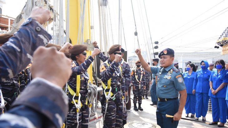 Jakarta, PUBLIKASI – Memasuki alur perairan pelabuhan Tanjung Priok, dari geladak KRI Bimasuci terdengar ‘prayen’ peran parade roll… peran parade roll… tidak berselang lama Taruna AAL dengan sigap menaiki tangga tiang layar sampai dengan tangga teratas. Dengan terus melambaikan tangan dan diiringi genderang seruling para Taruna AAL menyapa seluruh pejabat Komando Lintas Laut Militer yang saat itu menunggu KRI Bimasuci sandar di dermaga Mako Kolinlamil, Tanjung Priok, Jakarta Utara, Kamis (21/7).