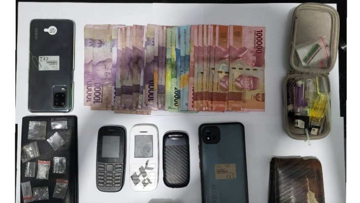 Sedangkan pelaku lainnya ZM bersama dengan AO di dalam rumah tersebut, kemudian dilakukan penggeledahan badan, dan di temukan berupa 1 (satu) buah dompet warna hitam yang di dalam nya berisikan 3 (tiga) buah mancis, 3 (tiga) buah pipet plastik, 1 (satu) buah kaca pirek dan 2 (dua) bungkus plastik bening yang masing-masing berisikan beberapa plastik bening kosong dari kantong celana sebelah kanan pelaku AJ, 1 (satu) unit handphone tanpa merk warna putih, uang tunai Rp 1.200.000 (satu juta dua ratus ribu rupiah) dan 1 (satu) buah dompet warna hitam dari AI, 1 (satu) unit handphone merk REALME warna biru dan 1 (satu) unit handphone samsung lipat warna hitam dari pelaku ZM, 1 (satu) unit handphone Nokia warna hitam dan 1 (satu) unit handphone merk OPPO warna hitam dari pelaku AO.