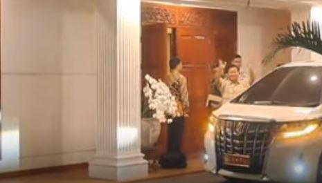 Prabowo pulang dari menjalankan tugasnya sebagai Menteri Pertahanan (Menhan) pada hari ini.