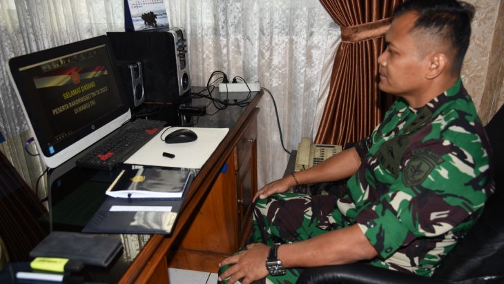 Jakarta, PUBLIKASI – Kepala Sekretariat Umum Komando Lintas Laut Militer Letkol Laut (S) Misge Bintarama mengikuti Rapat Koordinasi Teknis Kesekretariatan TNI Tahun 2022 dengan tema “Melalui Rakornisset TNI Kita Tingkatkan Kualitas SDM Kesekretariatan dan Pengelolaan Kearsipan Guna Mendukung Reformasi Struktural dan Tugas Pokok TNI” melalui video conference dari ruang kerjanya di Mako Kolinlamil, Tanjung Priok, Jakarta Utara, Selasa (29/3).