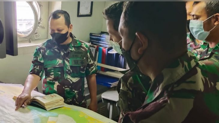 Jakarta, PUBLIKASI – Konvoi dalam bahaya, musuh yang mencoba menggagalkan operasi mendekat. Alarm tanda bahaya berbunyi dan seluruh ruangan kapal prajurit terdengar aba-aba peran tempur, sontak seluruh prajurit KRI segera menyiapkan diri dan dengan sigap berlari menuju pos tempurnya masing-masing. Di anjungan Komandan KRI segera memerintahkan Perwira Navigasi untuk menghitung dalam Papan Olah Gerak kecepatan dan halu untuk menempati posisi yang diarahkan oleh Komandan Tabir. Unsur-unsur KRI Satuan Lintas Laut Militer 2 membentuk formasi tabir dalam simulasi Screen Exercise pada latihan mingguan bulan Februari tahun 2022 di Dermaga Madura, Ujung, Surabaya, Selasa (15/2).