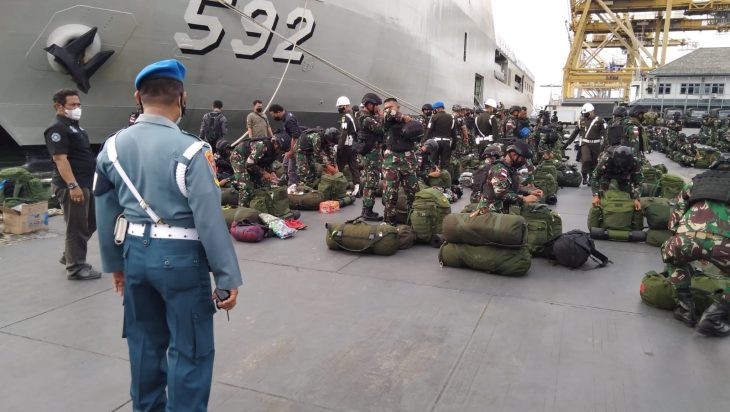 Jakarta, PUBLIKASI – Rabu pagi (2/3) KRI Banjarmasin-592 secara perlahan dan pasti mulai merapat dan sandar di Dermaga Kolinlamil, Tanjung Priok, Jakarta Utara. Kedatangan salah satu KRI jajaran Kolinlamil tersebut dalam rangka menjemput Batalyon Infantri Raider 301/Prabu Kian Santang yang selanjutnya akan bergabung dengan rekan-rekannya dari Batalyon Infanteri Raider Khusus 113/Jaya Sakti yang bermarkas di Bireuen, Aceh yang sebelumnya telah diembarkasikan di Lhokseumawe, Aceh. Pasukan TNI AD dari kedua Batalyon tersebut selanjutnya akan diangkut menuju Papua guna melaksanakan penugasan operasi sebagai bagian dari Satuan Tugas Pengamanan Perbatasan RI-PNG Puncak Jaya tahun 2022.