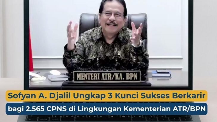 Jakarta, PUBLIKASI – Menteri Agraria dan Tata Ruang/Kepala Badan Pertanahan Nasional (ATR/BPN), Sofyan A. Djalil secara resmi menyambut kehadiran Calon Pegawai Negeri Sipil (CPNS) tahun 2022 di lingkungan Kementerian ATR/BPN. Setelah melalui berbagai tes, sebanyak 2.565 calon pegawai memulai kariernya di Kementerian ATR/BPN dengan penempatan baik di pusat ataupun di daerah.