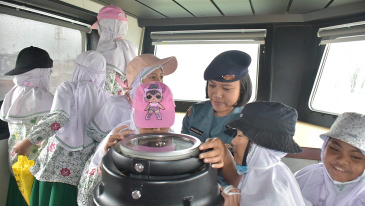 Jakarta, PUBLIKASI — Komando Lintas Laut Militer turut berperan dalam menanamkan jiwa kemaritiman kepada para pelajar dan generasi muda. Program Kolinlamil untuk memfasilitasi berbagai kalangan masyarakat untuk melihat dari dekat teknologi dan peralatan yang ada di kapal perang (KRI) berhasil menarik minat para pelajar untuk berkunjung ke kapal-kapal perang jajaran Kolinlamil. Seperti yang terjadi hari ini, ratusan pelajar Sekolah Dasar Islam Terpadu Al-Hambra Kebayoran Lama berkunjung ke KRI Banda Aceh-593 yang tengah sandar di Dermaga Mako Kolinlamil, Tanjung Priok, Jakarta Utara, Kamis (2/3).