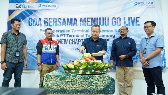 Surabaya, PUBLIKASI – PT Pelindo Terminal Petikemas (SPTP) menyerahkan pengelolaan operasional dan pemeliharaan Terminal Peti Kemas (TPK) Nilam kepada PT Terminal Teluk Lamong (TTL). Serah operasi tersebut merupakan bagian dari rencana strategis SPTP untuk mewujudkan operation Excellent. Serah terima operasi TPK Nilam kepada Terminal Teluk Lamong efektif dilakukan mulai tanggal 1 Mei 2024. TPK Nilam merupakan terminal petikemas yang berlokasi di Pelabuhan Tanjung Perak Surabaya dengan Panjang dermaga 320×20 meter dan kedalaman -9 MLWS.