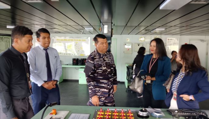 Dalam kesempatan kunjungan tersebut, Komandan KRI Teluk Calang-524, Letkol Laut (P) Frejohn Da Costa, M. Tr. Opsla bersama prajurit menyambut dengan hangat kedatangan Komandan Lantamal X Brigjen TNI (Mar) Ludi Prastyono, M.Tr., Opsla bersama rombongan di lounge room Perwira KRI TCL-524. Suasana semakin akrab ketika Komandan KRI Teluk Calang-524 menceritakan perjalanannya hingga bisa sampai di Kota Jayapura. Senada dengan KRI Teluk Calang-524, Ibu Suhaeni yang merupakan Ketua Pimpinan Bank Sinar Mas mengungkapkan kebanggaannya bisa berkunjung dan melihat kecanggihan dan fasilitas yang dimiliki KRI TCL-524, mengingat ini merupakan kali pertama beliau beserta staffnya mengunjungi Kapal Perang milik TNI Angkatan Laut. Kegiatan kunjungan diakhiri dengan tour facility dan ramah tamah. (Andi RR)