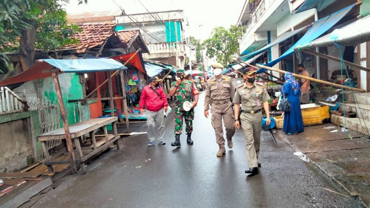 Jakarta, PUBLIKASI – Unsur Tiga Pilar Kelurahan Semper Timur melaksanakan kegiatan woro-woro untuk mengingatkan kembali kepada masyarakat mengenai pentingnya protokol kesehatan (prokes) dan vaksinasi Covid-19. Sejumlah lokasi yang menjadi pusat aktivitas masyarakat seperti halnya pasar kerap menjadi sasaran kegiatan woro-woro.
