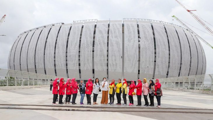 Jakarta, PUBLIKASI – Tim Penggerak PKK bersama pengurus Dharma Wanita Persatuan (DWP) Kota Administrasi Jakarta Utara, dan Persit Kartika Candra Kirana Kodim 0502/JU mendapatkan kesempatan untuk berkunjung ke Jakarta International Stadium (JIS), Rabu (26/1). Penerapan protokol kesehatan Covid-19 dan pembatasan jumlah pengunjung menjadi persyaratan yang harus dipenuhi saat memasuki area JIS yang kini masih dalam tahap penyelesaian pembangunan.