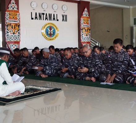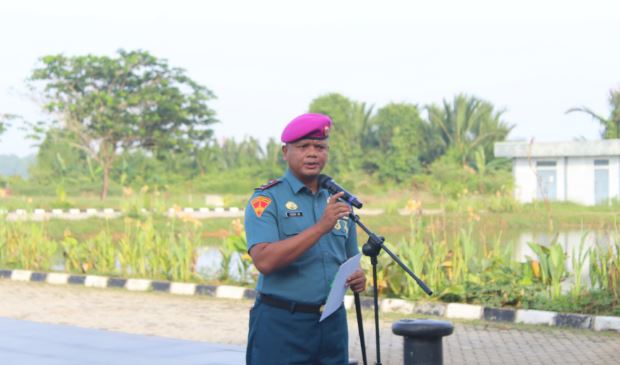Mempawah, PUBLIKASI — Komandan Detasemen Markas (Dandenma) Pangkalan Utama TNI Angkatan Laut (Lantamal) XII Mayor Marinir Yudha Hermawan Kurniadi membacakan amanat Panglima TNI dalam Apel Pagi di Lapangan Apel Mako Lantamal XII, Jl. Wajok Hilir km. 17 Kabupaten Mempawah Kalimantan Barat, Rabu (17/07/2024).