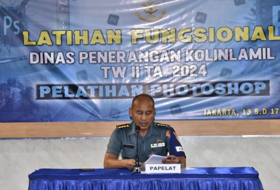 Jakarta, PUBLIKASI — Dalam rangka menghasilkan Sumber Daya Manusia (SDM) yang profesional, kreatif dan inovatif di bidang aplikasi multimedia, TNI Angkatan Laut (TNI AL) dalam hal ini Dinas Penerangan Kolinlamil menggelar Latihan Fungsional (Latfungsi) Penerangan TW II Tahun 2024 yang dibuka secara langsung oleh Kadispen Kolinlamil Kolonel Laut (KH) Drs. Lie Lie Soeprijatna, M.M, bertempat di Gedung Laut Natuna Lantai 3, Mako Kolinlamil, Tanjung Priok, Jakarta Utara, Senin (13/5). Dengan materi pelatihan yang diberikan adalah dasar-dasar Photoshop dan diikuti perwakilan prajurit dan PNS dari masing-masing Satuan Kerja Kolinlamil.