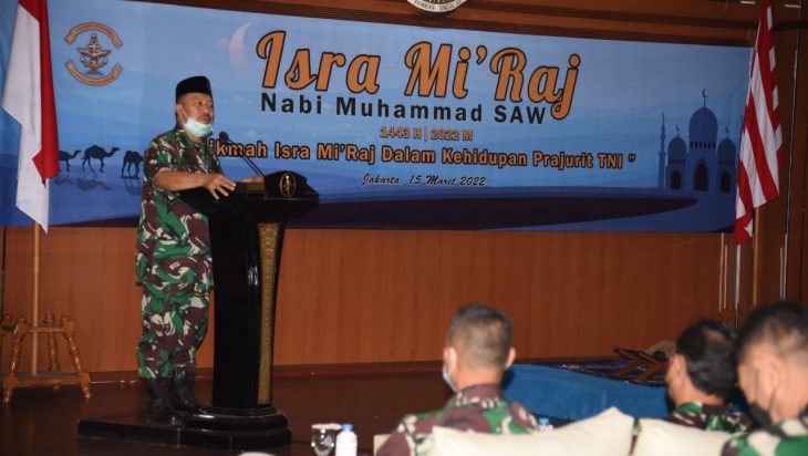 Peringatan Isra Mi’raj yang dilaksanakan setiap tahunnya merupakan bentuk pembinaan mental rohani bagi prajurit TNI AL. Sesuai dengan perintah harian Kepala Staf Angkatan Laut Laksamana TNI Yudo Margono bahwa setiap prajurit TNI AL harus selalu meningkatkan keimanan dan ketaqwaan kepada Tuhan Yang Maha Esa sebagai landasan dalam pengabdian sebagai prajurit Jalasena. (Andi RR)