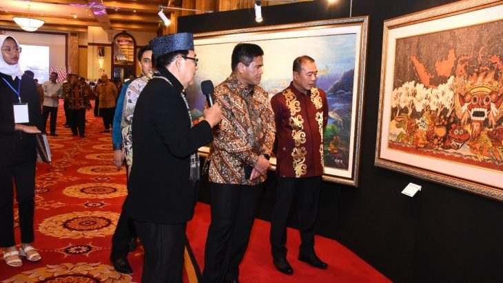 Jakarta, PUBLIKASI — Dalam rangka menyambut Hari Ulang Tahun ke-79 TNI AL yang akan jatuh pada 10 September mendatang, TNI AL berkolaborasi dengan pelukis ternama Firdaus Alamhudi menggelar Pameran Besar Lukisan bertajuk “Padamu Negeri”. Hadir dalam kesempatan tersebut Panglima Kolinlamil Laksda TNI Hudiarto Krisno Utomo, PSC(j) M.A., M.M.S., CHRMP didampingi Ketua Gabungan Jalasenastri Kolinlamil Ny. Irna Krisno Utomo, Senin malam (2/9).