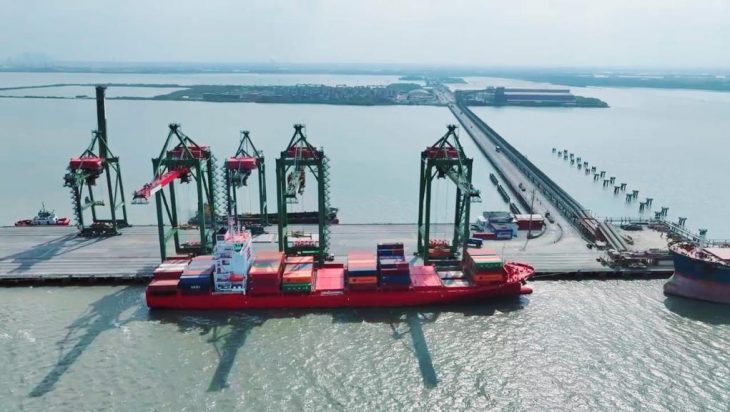 ”Kapal ini perdana sandar di Terminal Teluk Lamong, untuk sementara masih 2 minggu sekali voyage nya,” kata Dani Novianto, Country Head PT MAP Trans Logistic.